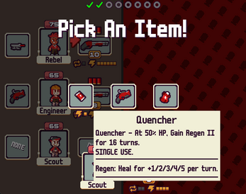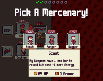 Each round you get a weapon and item to take into the next battle. On the first 3 rounds, you get a Mercenary for your team.