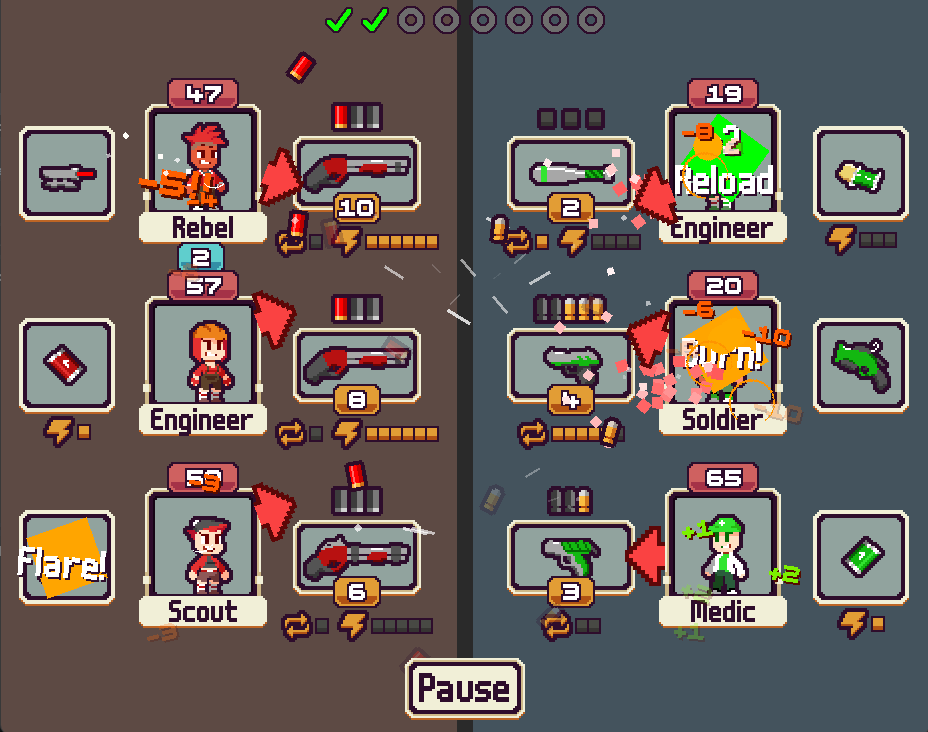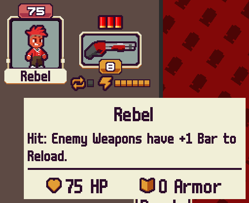 Weapons start off with a Clip full of bullets that fires each turn. When it runs out, you start reloading the weapon.